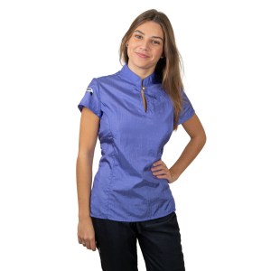 The Tikima Top Figari shirt is available in black, blue, light pink, and purple, offering a variety of stylish options for any grooming professional.